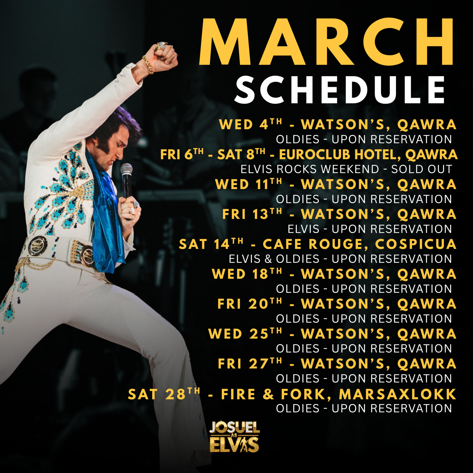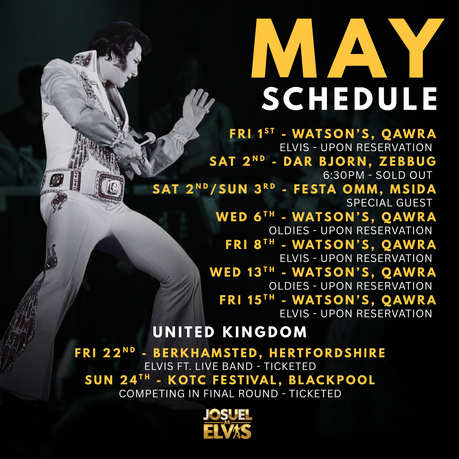 Josuel’s commitment to his role as an Elvis tribute artist extends far beyond entertainment; it’s a heartfelt homage to a musical icon, dedicated to preserving Elvis Presley’s enduring legacy. By captivating audiences worldwide with the enchantment of Elvis’s live performances, Josuel remains unwavering in his pursuit of perfection. Continually refining his craft and pushing artistic boundaries, he strives to offer fans an unparalleled Elvis experience. With a readiness to grace any stage and inspire a new generation of Elvis enthusiasts, Josuel is steadfast in his mission to ensure the King’s music and spirit endure for years to come.